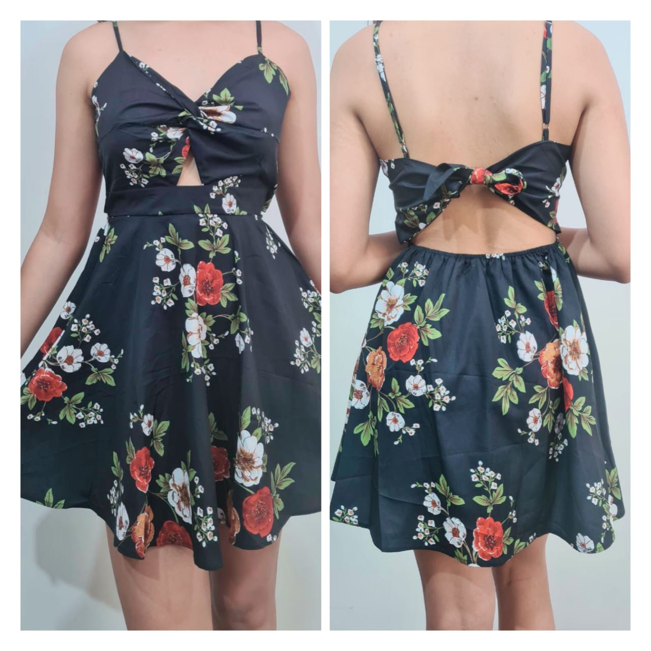 Mini robe courte avec découpe sur le devant et nœud dans le dos - Imprimé floral quantity