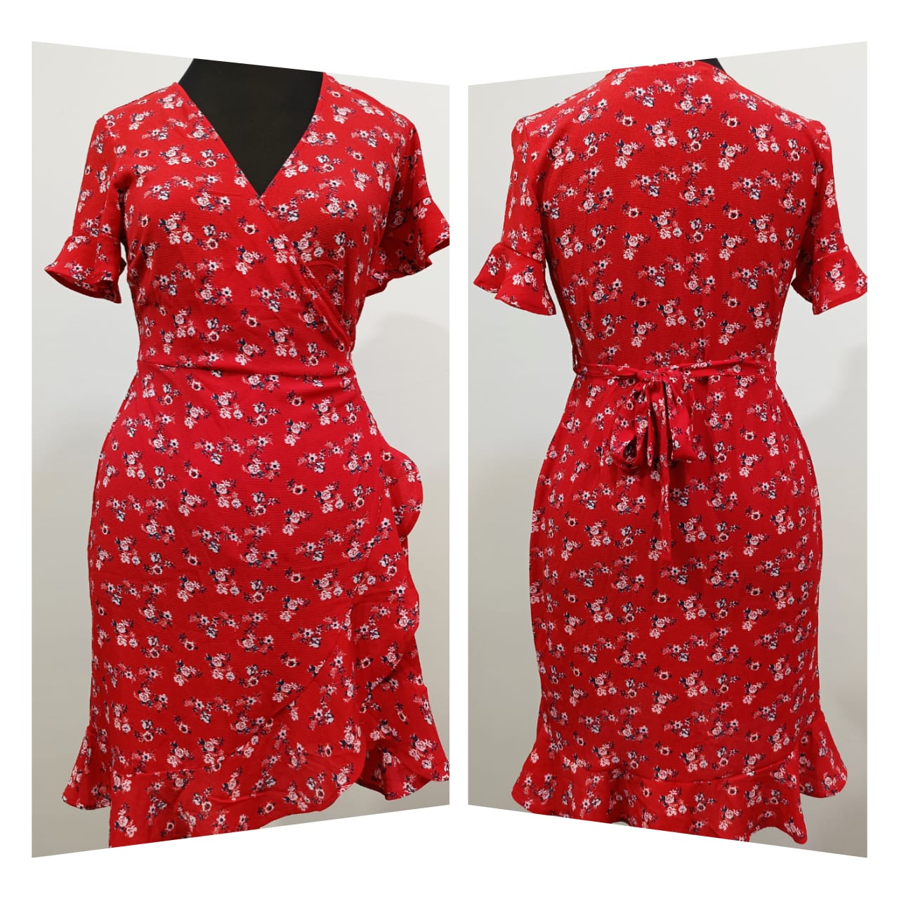 Robe courte avec imprimé floral et col en V et manches volantées quantity