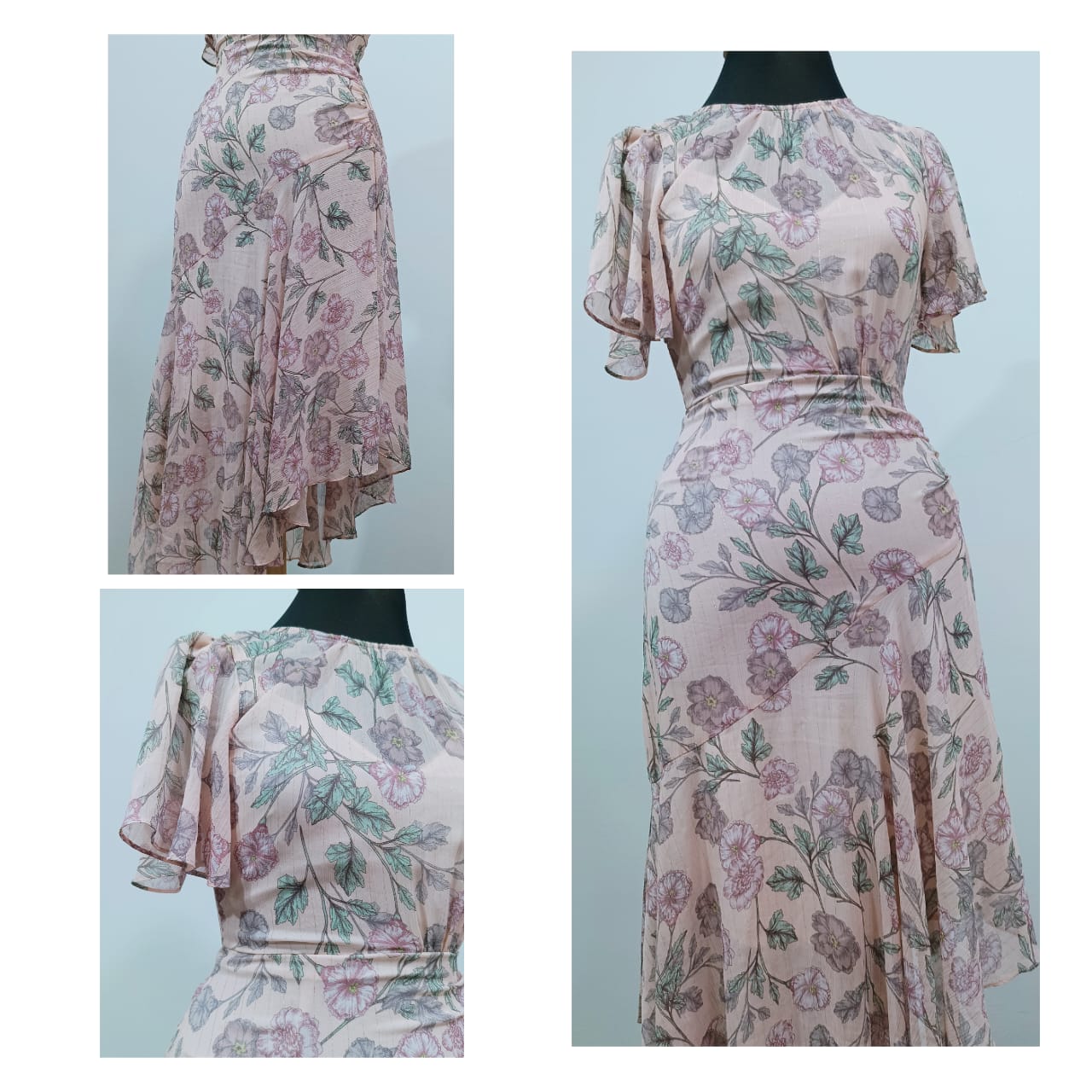 Zara robe demi long voile léger et fluide à smocks au ventre