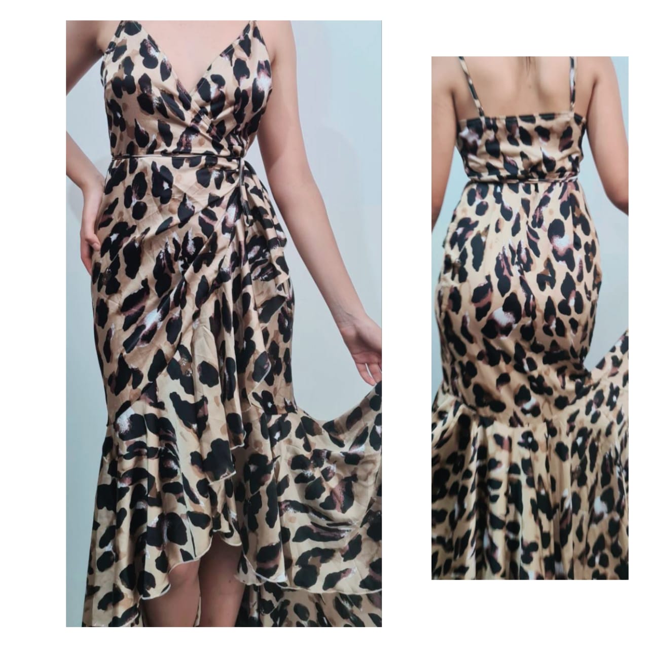 Robe imprimée léopard sans manches volants Robe asymétrique à longueur de plancher quantity